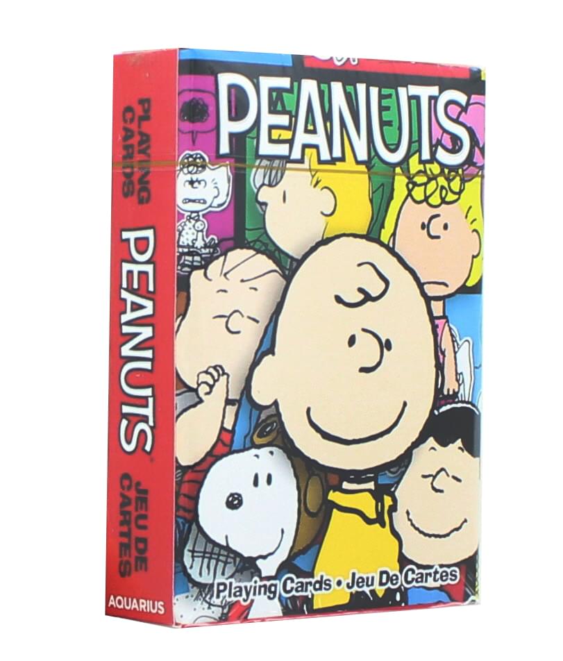 Peanuts Cast Playing Cards Peanuts Cast Playing Cards PEANUTS CASE DECK OF PLAYING CARDS: Play your favorite card games as you Deal out a handful of happiness with Snoopy, Charlie Brown, Lucy and the rest of the Peanuts gang! Each card captures the charm and cheer of Charles Schulz's classic comic strip UNIQUE DESIGN ON EVERY CARD: This Peanuts deck of playing cards includes 54 cards (52 playing cards and 2 jokers). Every single playing card features its own distinct Peanuts Cast themed design.
