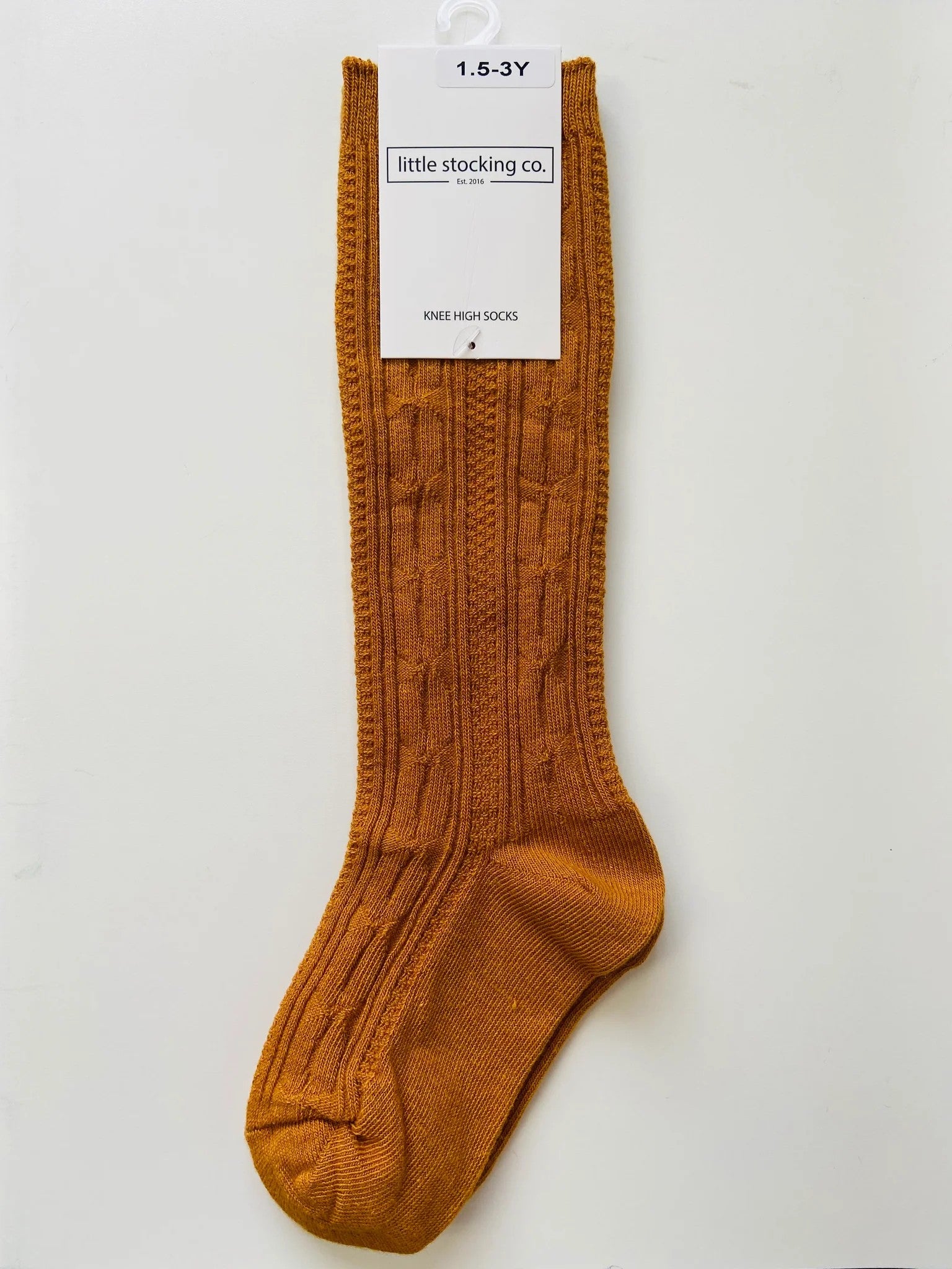 Butterscotch Cable Knit Knee High Socks for babies, toddlers and children!