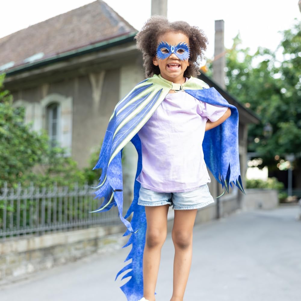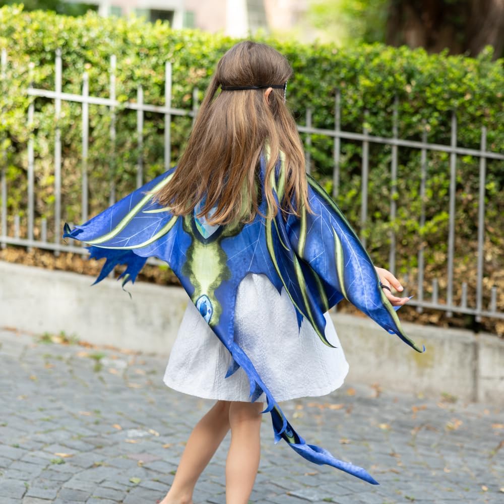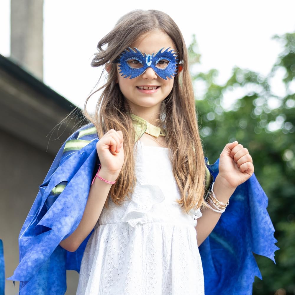 Unleash your inner dragon with the Celestial Dragon Jewel Soft Wings! These stunning wings are crafted from blue laser-cut material, featuring vibrant royal blue with intricate green detailing that adds a magical touch. The wings are complemented by a flowing tail, creating a full dragon-inspired look. To complete the ensemble, an eye mask is included, making it the perfect accessory for imaginative play and costume adventures. Whether for dress-up or a fantasy-themed event, these wings will make you feel truly legendary!