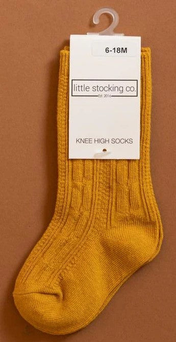 Gold Cable Knit Knee High Socks for babies, toddlers and girls!