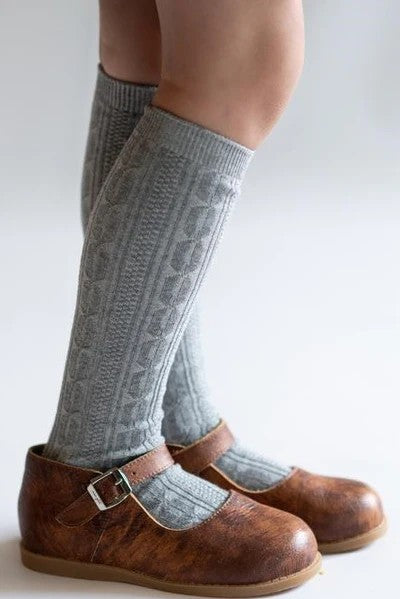 Gray Cable Knit Knee High Socks for babies, toddlers and children!
