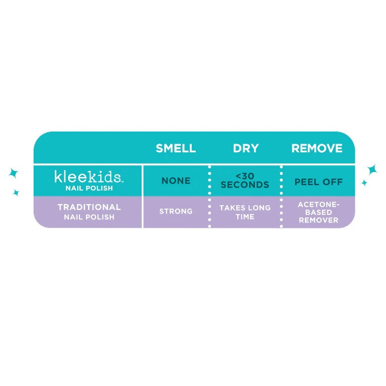 Klee Kids Water-Based Nail Polish contains none of those scary chemicals. Best of all, the polish can be peeled off without nail polish remover after use.