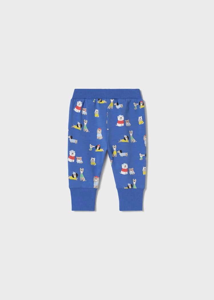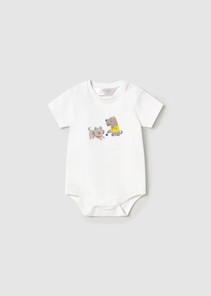 Long-sleeved sweatshirt for newborn with elastic cuffs for a snug fit. Features a hood and a front zip closure for easy dressing. Includes a functional front pocket and playful printed detailing for added charm. Short-sleeved bodysuit for newborn with a round neckline. Snap-button fastening at the neck and in the crotch for quick and comfortable changes. Decorated with a fun print. Elastic waist pants for newborn, made from soft, breathable fabric. All-over printed design, perfect for creating playful and comfy everyday looks. Item 1803