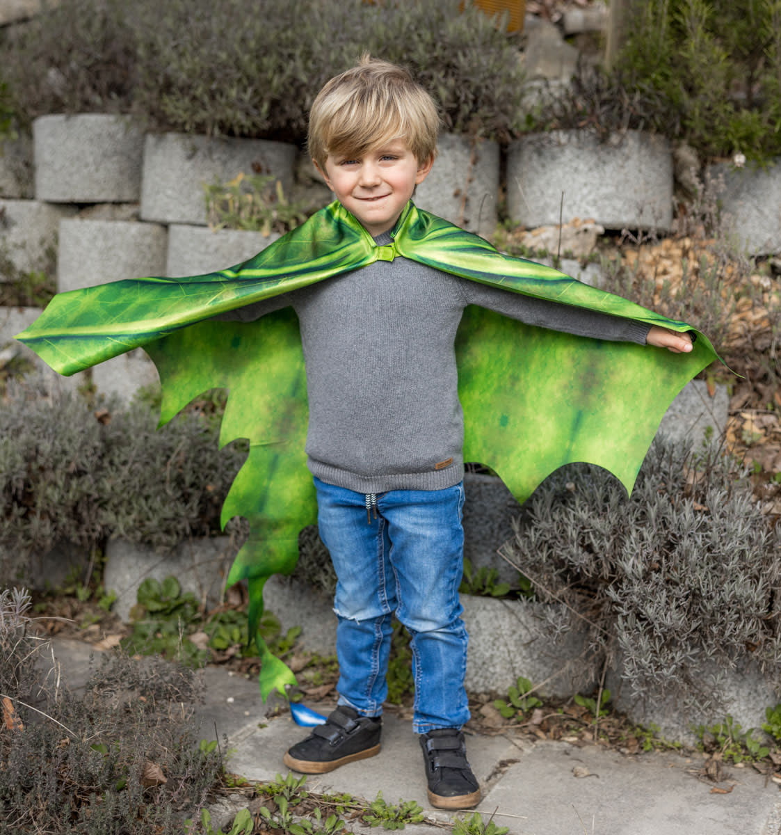 Turn your youngster into a mystical marvel with our Legendary Dragon Soft Wings! This charming green dragon ensemble will whisk your child away, igniting their imagination to breathe fire and take flight through the skies. Meticulously hand-drawn by our skilled in-house graphic designer and engineered for seamless movement, these lightweight wings guarantee that your little one's imagination will soar to boundless new heights!