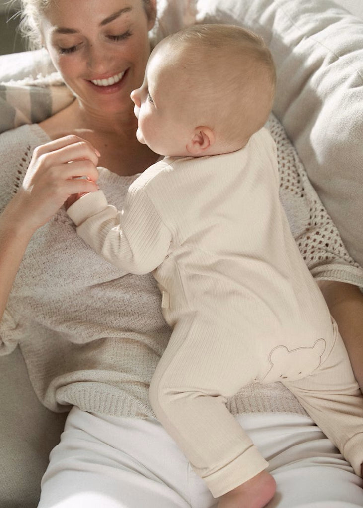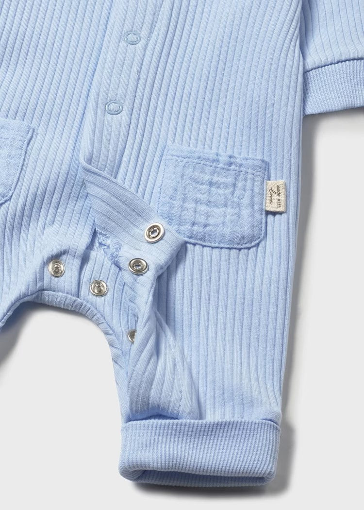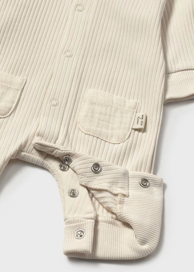 Long-sleeve one-piece for newborns with a front button closure and delicate embroidery for a charming touch. This unisex design is highly versatile, featuring neutral tones and a simple, comfortable shape, making it perfect for any little one. Ideal for both boys and girls, it offers both style and practicality. Item 1797