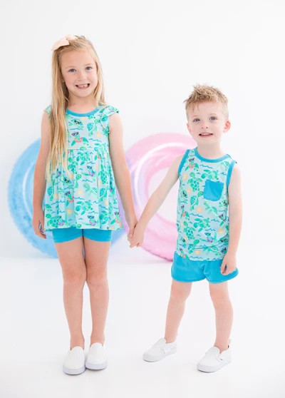 Crafted from luxurious bamboo viscose and spandex fabric, this birdie set is designed to be comfortable and lightweight, keeping your little one cool and confident all day long. Its playful design adds a fun twist to any wardrobe. It’s the perfect blend of comfort, style, and durability!
