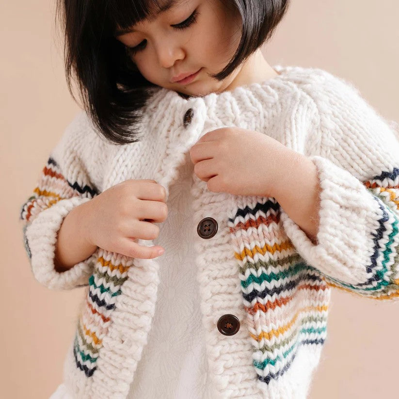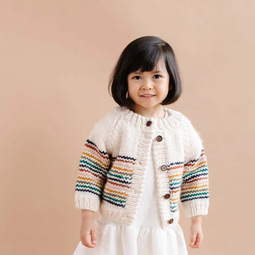 If you want the rainbow, you gotta put up with the rain. Stash away a rainbow of memories in this adorable rainbow striped cardigan. Retro colors include Cinnamon, Blush, Mustard, Teal, Olive, and Navy.